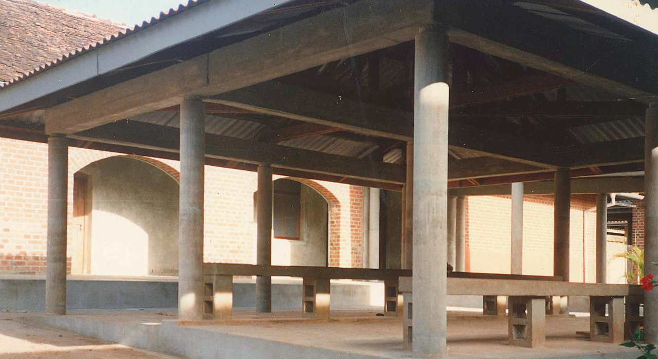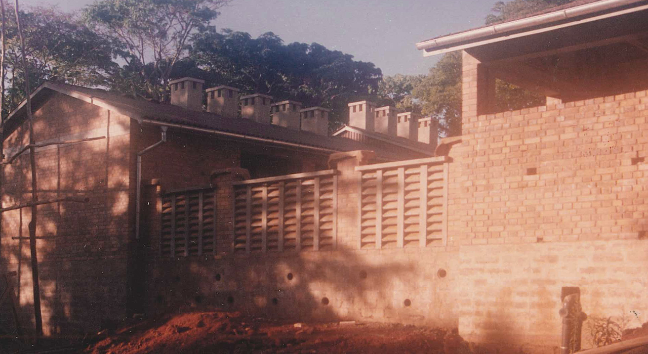 Overall, building is conceived to blend in the Peramiho townscape. A large brick coloured hipped roof; the white painted wooden façade elements and the cladding of the plinth with terracotta tiles. The balcony is carried by typical prefab Peramiho columns; balustrades made of fitted pipework. All recognisant of the surrounding built environment.