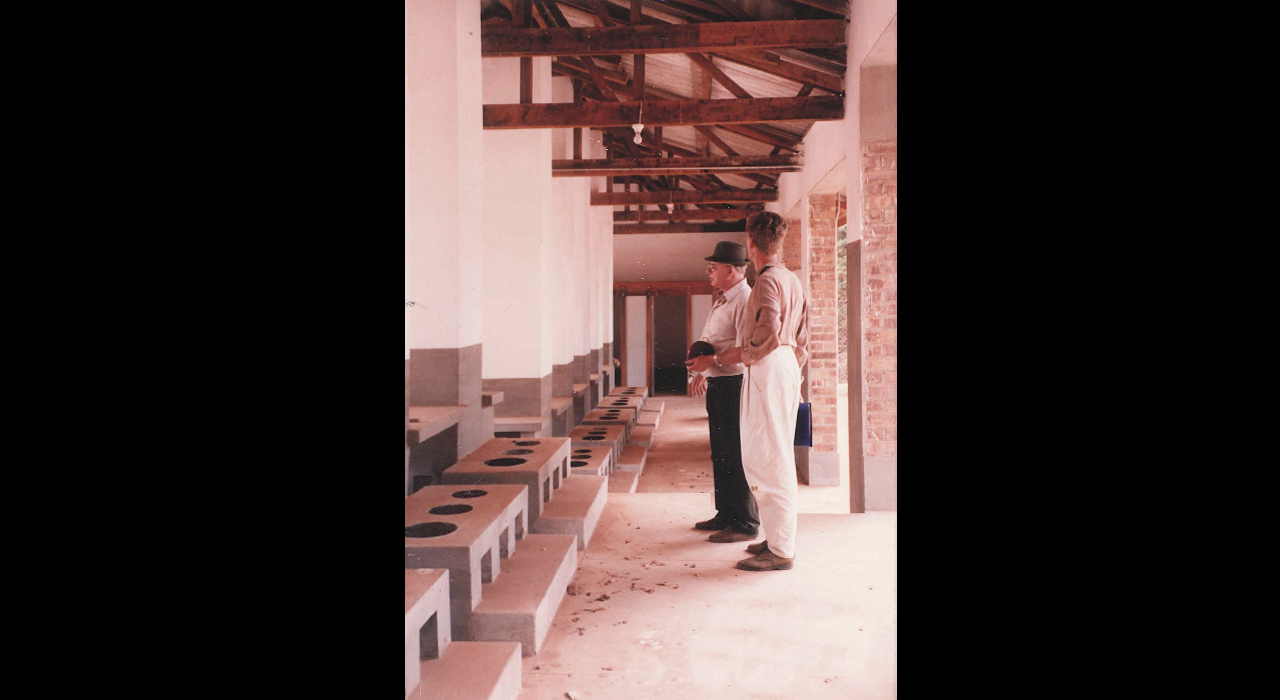 The building is situated down hill opposite the storied building housing the children’s ward upstairs and stores and services buildings downstairs. The privacy and protection for the children’s isolation wards posed a definite clash between the open and ambulant atmosphere of TB wards which was resolved by clever floor planning and access routes. The yard remained controlled and private and belonging to the staff. At the other side of the gate the public area commences, relatives’ hostel and outpatient clinics are situated here. Further downhill is a semi-public loop road providing access to TB wards, through the recreational garden.