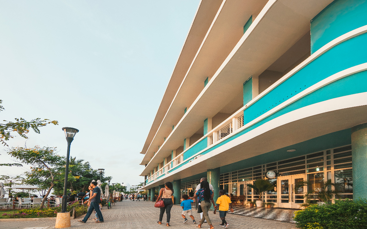 Over the years, FBW has been actively involved in the redevelopment of the shipyard into a multiuse complex, encompassing retail, a hotel, various restaurants and cafes, offices and studios, a mooring site and jetty. The complex consists of six individual buildings: Terrace, TingaTinga, Sun Palace, Souk, Boathouse, and Seaview, a four-story hotel with shops and restaurants on the ground floor.
